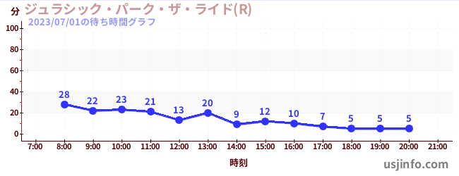 • ジュラシック・パーク・ザ・ライド(R)$B$N(B2023年07月01日の待ち時間