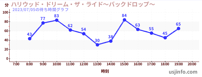 • ハリウッド・ドリーム・ザ・ライド〜バックドロップ〜$B$N(B2023年07月05日の待ち時間