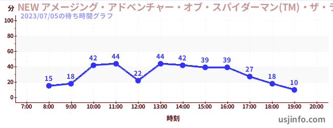 • NEW アメージング・アドベンチャー・オブ・スパイダーマン(TM)・ザ・ライド 4K3D$B$N(B2023年07月05日の待ち時間