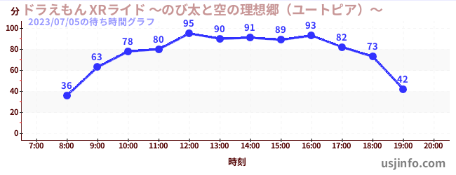 • ドラえもん XRライド ~のび太と空の理想郷(ユートピア)~$B$N(B2023年07月05日の待ち時間
