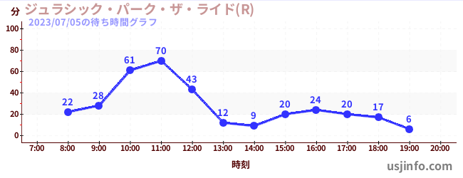 • ジュラシック・パーク・ザ・ライド(R)$B$N(B2023年07月05日の待ち時間