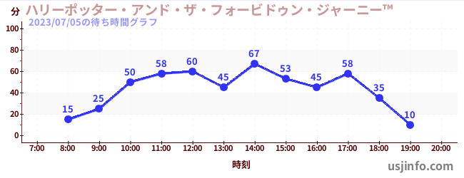 • ハリーポッター・アンド・ザ・フォービドゥン・ジャーニー™$B$N(B2023年07月05日の待ち時間