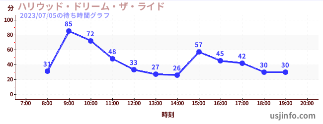 • ハリウッド・ドリーム・ザ・ライド$B$N(B2023年07月05日の待ち時間