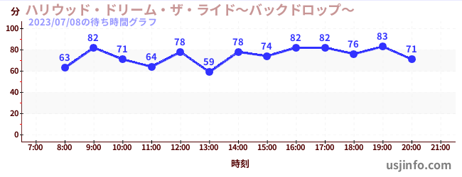 • ハリウッド・ドリーム・ザ・ライド〜バックドロップ〜$B$N(B2023年07月08日の待ち時間