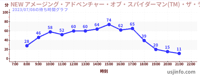 • NEW アメージング・アドベンチャー・オブ・スパイダーマン(TM)・ザ・ライド 4K3D$B$N(B2023年07月08日の待ち時間