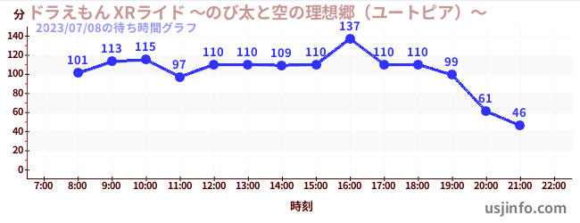 • ドラえもん XRライド ~のび太と空の理想郷(ユートピア)~$B$N(B2023年07月08日の待ち時間