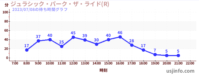 • ジュラシック・パーク・ザ・ライド(R)$B$N(B2023年07月08日の待ち時間