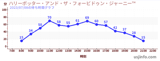 • ハリーポッター・アンド・ザ・フォービドゥン・ジャーニー™$B$N(B2023年07月08日の待ち時間