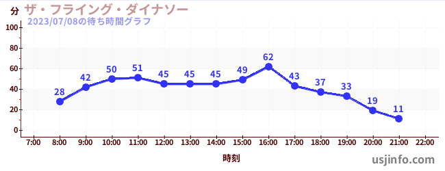• ザ・フライング・ダイナソー$B$N(B2023年07月08日の待ち時間
