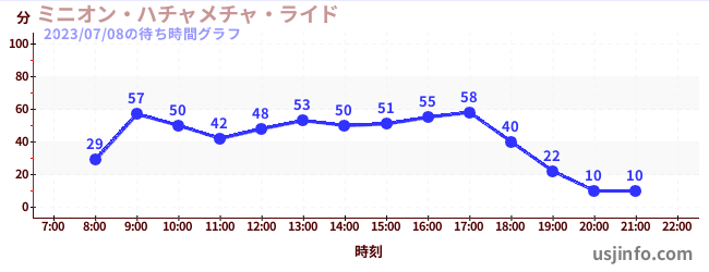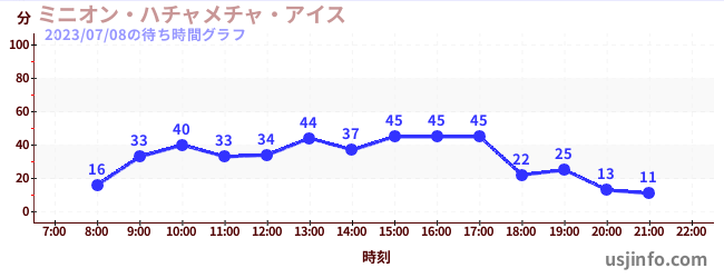 • ミニオン・ハチャメチャ・ライド$B$N(B2023年07月08日の待ち時間