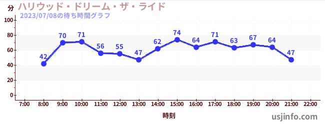 • ハリウッド・ドリーム・ザ・ライド$B$N(B2023年07月08日の待ち時間