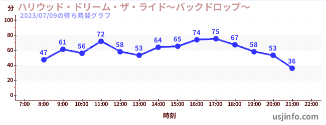 • ハリウッド・ドリーム・ザ・ライド〜バックドロップ〜$B$N(B2023年07月09日の待ち時間