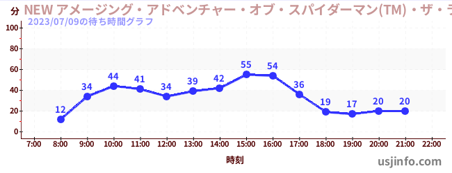 • NEW アメージング・アドベンチャー・オブ・スパイダーマン(TM)・ザ・ライド 4K3D$B$N(B2023年07月09日の待ち時間