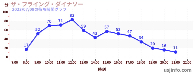 • ザ・フライング・ダイナソー$B$N(B2023年07月09日の待ち時間