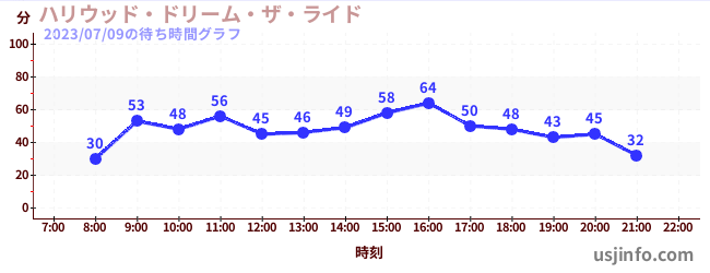 • ハリウッド・ドリーム・ザ・ライド$B$N(B2023年07月09日の待ち時間