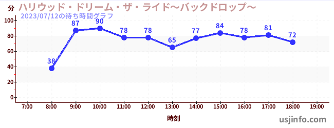 • ハリウッド・ドリーム・ザ・ライド〜バックドロップ〜$B$N(B2023年07月12日の待ち時間