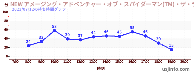 • NEW アメージング・アドベンチャー・オブ・スパイダーマン(TM)・ザ・ライド 4K3D$B$N(B2023年07月12日の待ち時間