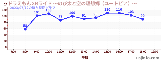 • ドラえもん XRライド ~のび太と空の理想郷(ユートピア)~$B$N(B2023年07月12日の待ち時間