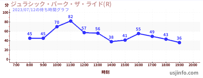 • ジュラシック・パーク・ザ・ライド(R)$B$N(B2023年07月12日の待ち時間
