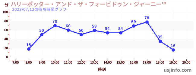 • ハリーポッター・アンド・ザ・フォービドゥン・ジャーニー™$B$N(B2023年07月12日の待ち時間