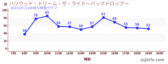 • ハリウッド・ドリーム・ザ・ライド〜バックドロップ〜$B$N(B2023年07月13日の待ち時間