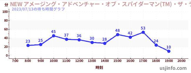 • NEW アメージング・アドベンチャー・オブ・スパイダーマン(TM)・ザ・ライド 4K3D$B$N(B2023年07月13日の待ち時間