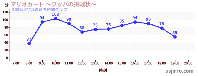 • マリオカート ~クッパの挑戦状~$B$N(B2023年07月13日の待ち時間
