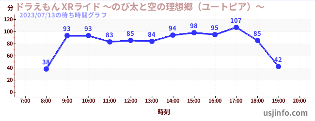 • ドラえもん XRライド ~のび太と空の理想郷(ユートピア)~$B$N(B2023年07月13日の待ち時間