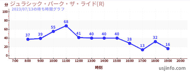 • ジョーズ(R)$B$N(B2023年07月13日の待ち時間