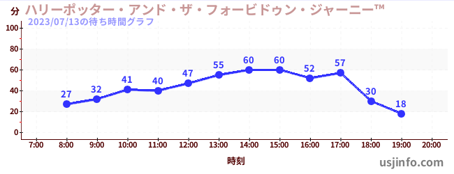 • ハリーポッター・アンド・ザ・フォービドゥン・ジャーニー™$B$N(B2023年07月13日の待ち時間