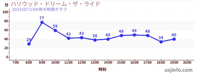 • ハリウッド・ドリーム・ザ・ライド$B$N(B2023年07月13日の待ち時間