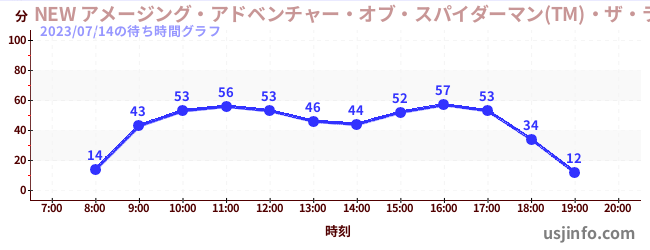 • NEW アメージング・アドベンチャー・オブ・スパイダーマン(TM)・ザ・ライド 4K3D$B$N(B2023年07月14日の待ち時間
