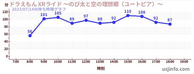 • ドラえもん XRライド ~のび太と空の理想郷(ユートピア)~$B$N(B2023年07月14日の待ち時間