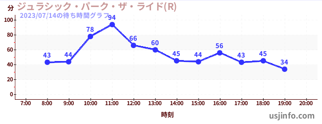 • ジュラシック・パーク・ザ・ライド(R)$B$N(B2023年07月14日の待ち時間