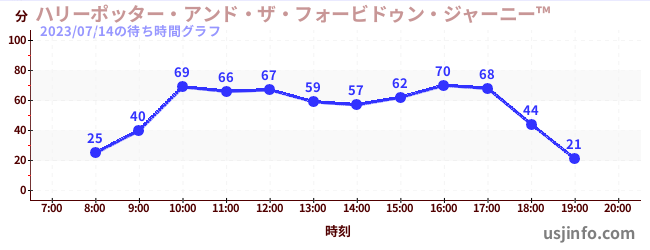 • ハリーポッター・アンド・ザ・フォービドゥン・ジャーニー™$B$N(B2023年07月14日の待ち時間