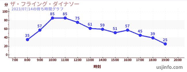 • ザ・フライング・ダイナソー$B$N(B2023年07月14日の待ち時間