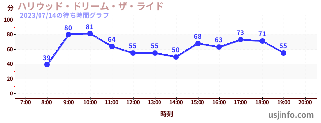 • ハリウッド・ドリーム・ザ・ライド$B$N(B2023年07月14日の待ち時間