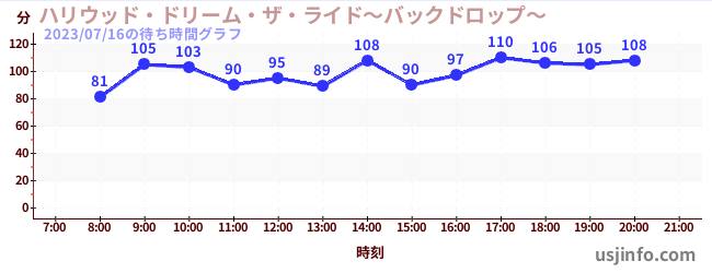 • ハリウッド・ドリーム・ザ・ライド〜バックドロップ〜$B$N(B2023年07月16日の待ち時間
