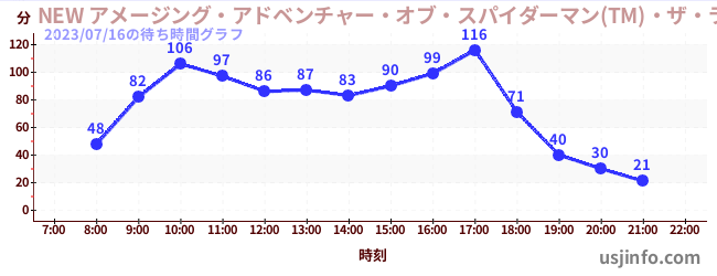 • NEW アメージング・アドベンチャー・オブ・スパイダーマン(TM)・ザ・ライド 4K3D$B$N(B2023年07月16日の待ち時間