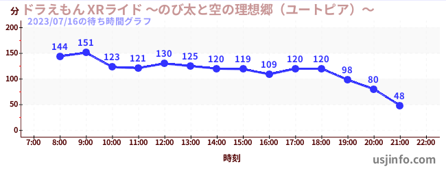 • ドラえもん XRライド ~のび太と空の理想郷(ユートピア)~$B$N(B2023年07月16日の待ち時間