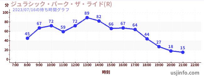• ジュラシック・パーク・ザ・ライド(R)$B$N(B2023年07月16日の待ち時間