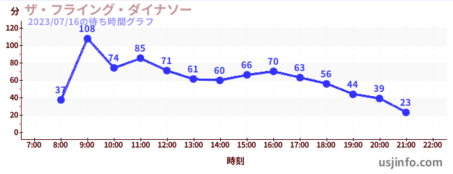 • ザ・フライング・ダイナソー$B$N(B2023年07月16日の待ち時間