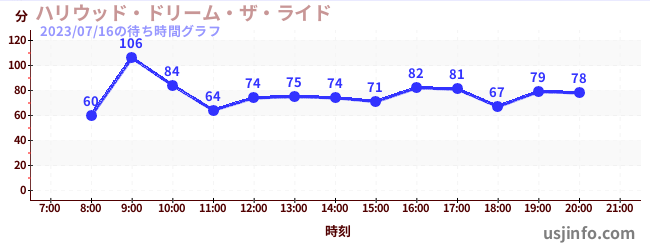 • ハリウッド・ドリーム・ザ・ライド$B$N(B2023年07月16日の待ち時間