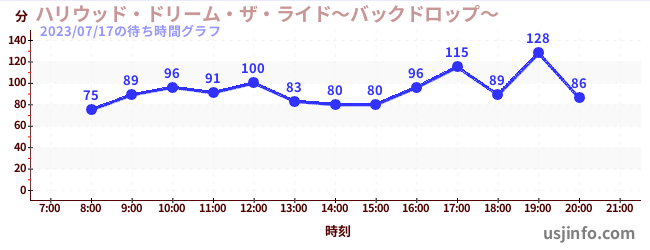 • ハリウッド・ドリーム・ザ・ライド〜バックドロップ〜$B$N(B2023年07月17日の待ち時間