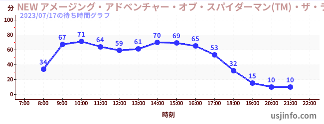 • NEW アメージング・アドベンチャー・オブ・スパイダーマン(TM)・ザ・ライド 4K3D$B$N(B2023年07月17日の待ち時間