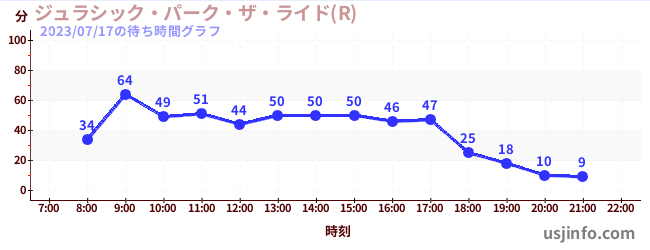 • ジュラシック・パーク・ザ・ライド(R)$B$N(B2023年07月17日の待ち時間