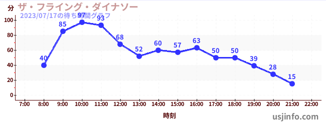 • ザ・フライング・ダイナソー$B$N(B2023年07月17日の待ち時間