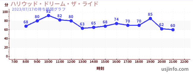 • ハリウッド・ドリーム・ザ・ライド$B$N(B2023年07月17日の待ち時間