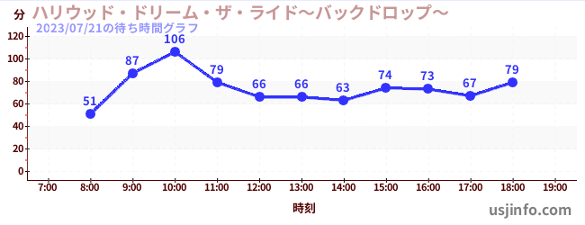 • ハリウッド・ドリーム・ザ・ライド〜バックドロップ〜$B$N(B2023年07月21日の待ち時間