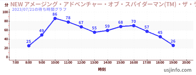• NEW アメージング・アドベンチャー・オブ・スパイダーマン(TM)・ザ・ライド 4K3D$B$N(B2023年07月21日の待ち時間